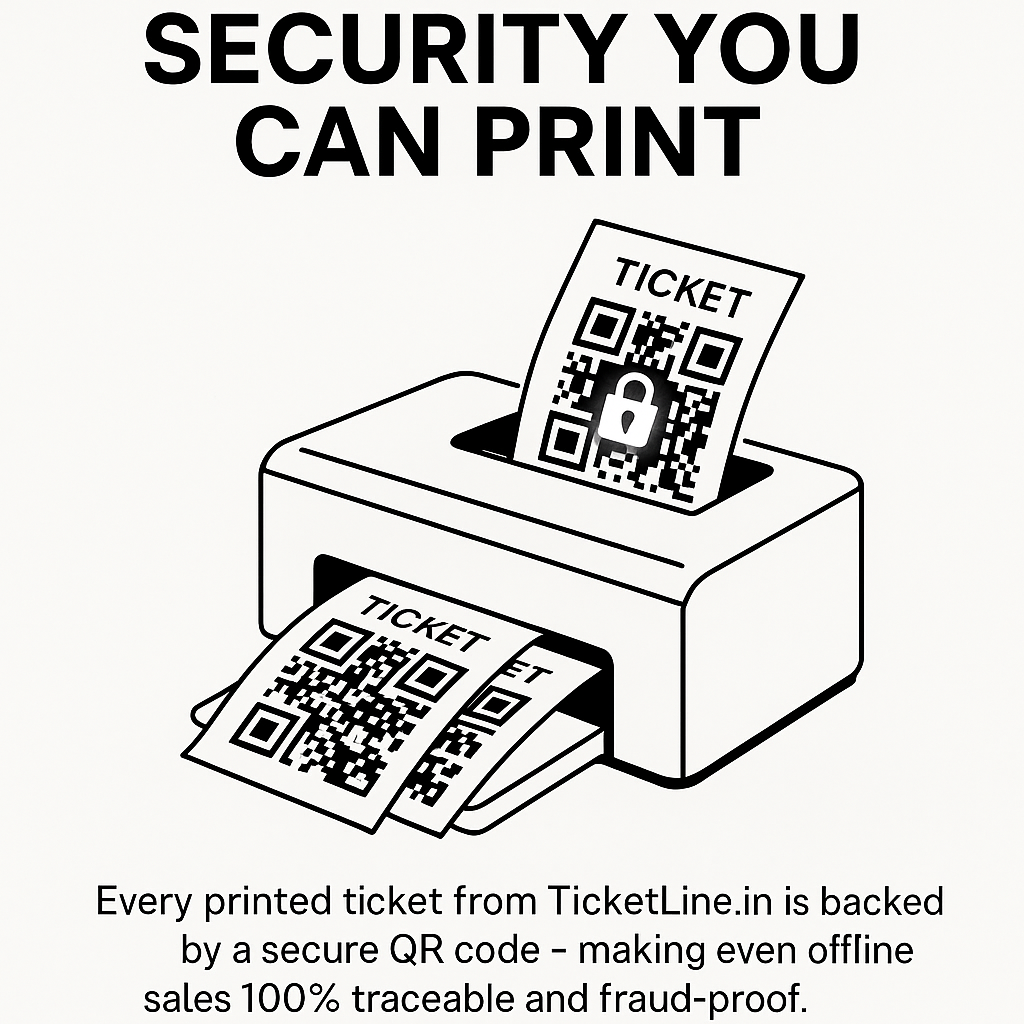 Every printed ticket from TicketLine.in is backed by a secure QR code —