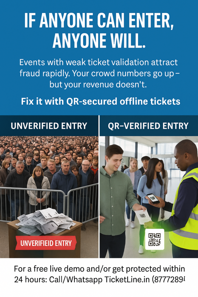 #UnverifiedEntry #EventRisk #QRTicketing #TicketLineIndia #EventTech #RevenueSecurity